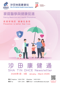 沙田區康健站將於 2026年 1至3月 按不同主題舉辦一系列專職醫療講座,由專職醫療人員包括藥劑師、營養師、物理治療師及職業治療師,為您解答常見健康問題及親自講解實用健康知識!